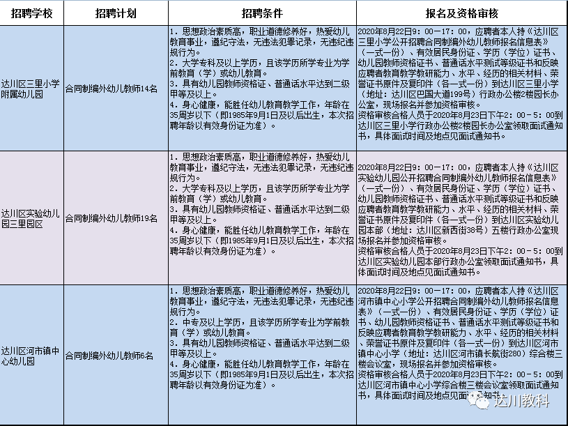 招聘信息綜合自達川區(qū)三里小學(xué)、達川區(qū)實驗幼兒園、河市鎮(zhèn)中心小學(xué)